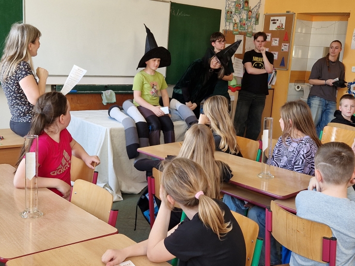 Noc z 13. na 14. března změnila naši školu ve Školu čar a kouzel v Bradavicích. Děti z prvního stupně za pomoci starších spolužáků prožívali kouzelná dobrodružství v rámci Noci s Andersenem.